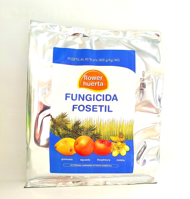 FOSETIL-AL 80 WG es un fungicida sistémico con efecto preventivo y curativo en el control de hongos de raíz, como Fitóftora, Gomosis, etc. y en casos que necesitemos reactivar la planta-árbol por: encharcamiento de agua, estrés hídrico, enfermedades, granizo..
