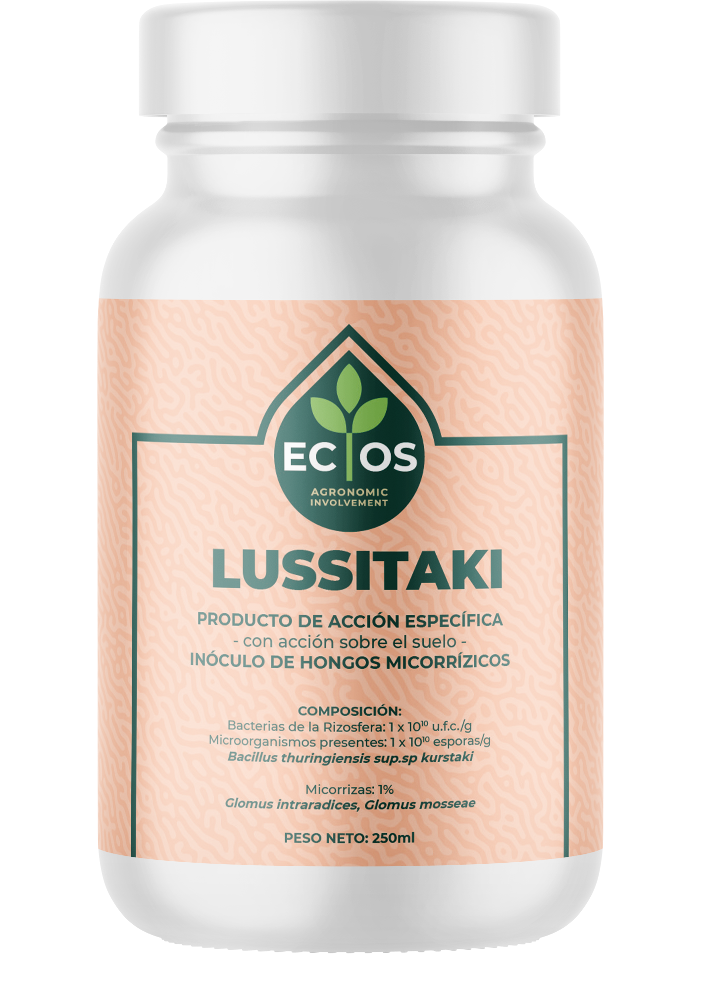 LUSSITAKI es un insecticida biológico compuesto por esporas y toxinas de la bacteria Bacillus thuringiensis var. kurstaki 1x109 u.f.c / kg. con una potente efectividad sobre orugas y larvas de lepidópteros, tanto las orugas que comen hojas (defoliadoras) como las perforadoras (taladros) que las más comunes son Tuta Absoluta (polilla del tomate), Spodoptera (Helicoverpa armigera, exigua, Spodoptera littoralis, Chrysodeixis chalcites y otras), así como Thaumatopoea Pythiocampa (procesionaria del pino) etc.